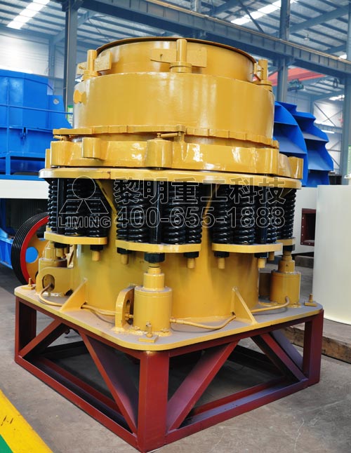 四川破碎機主要部分由機架、定錐總成、動錐總成、彈簧機構、碗型軸架部和傳動裝置組成。輔助部分由電氣系統、稀油潤滑系統、液壓清腔系統組成。其中定錐總成主要有調整套、軋臼壁,動錐總成主要由主軸、動錐體、破碎壁組成,傳動部分主要由大帶輪、傳動軸、小錐齒輪、大錐齒輪等組成。
