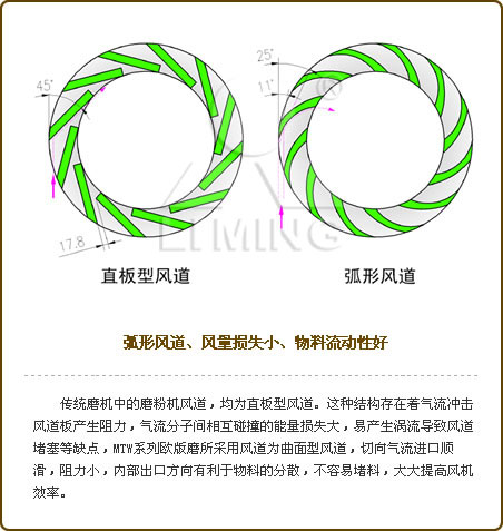 弧形風道,風量損失小、物料流動性好