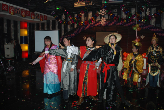 才藝雙全,風采盡顯。公司員工自編自導自演的大型古裝劇,滑稽的動作、表情,幽默的臺詞、語調,一舉一動,盡顯名家風范,贏得了現場陣陣掌聲。