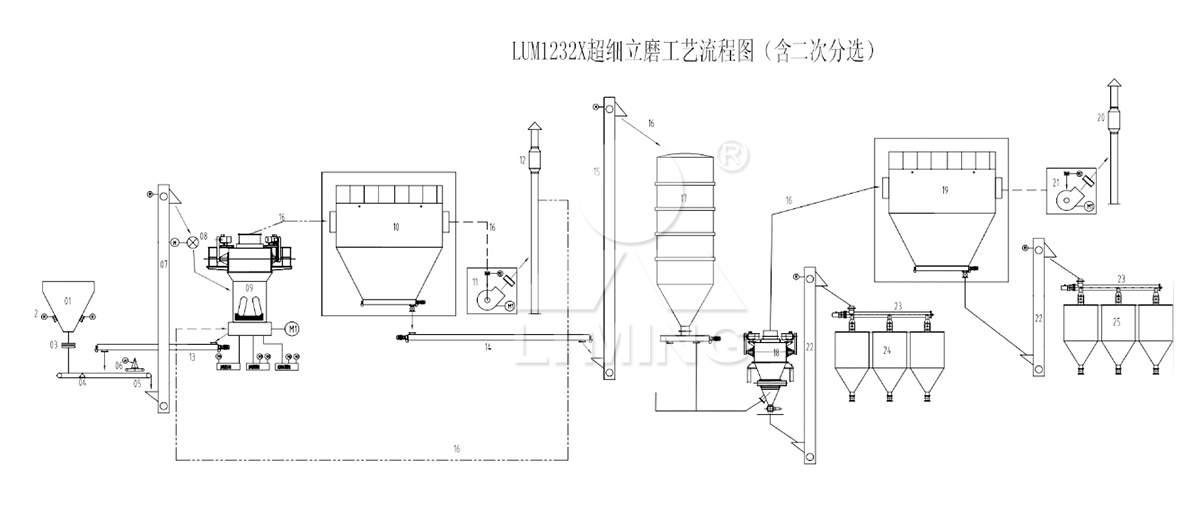 1可直接粉磨生產(chǎn)650目的重鈣,通過增加二次分級(jí)裝置,可生產(chǎn)1500目的超細(xì)重鈣,細(xì)可達(dá)2500目。